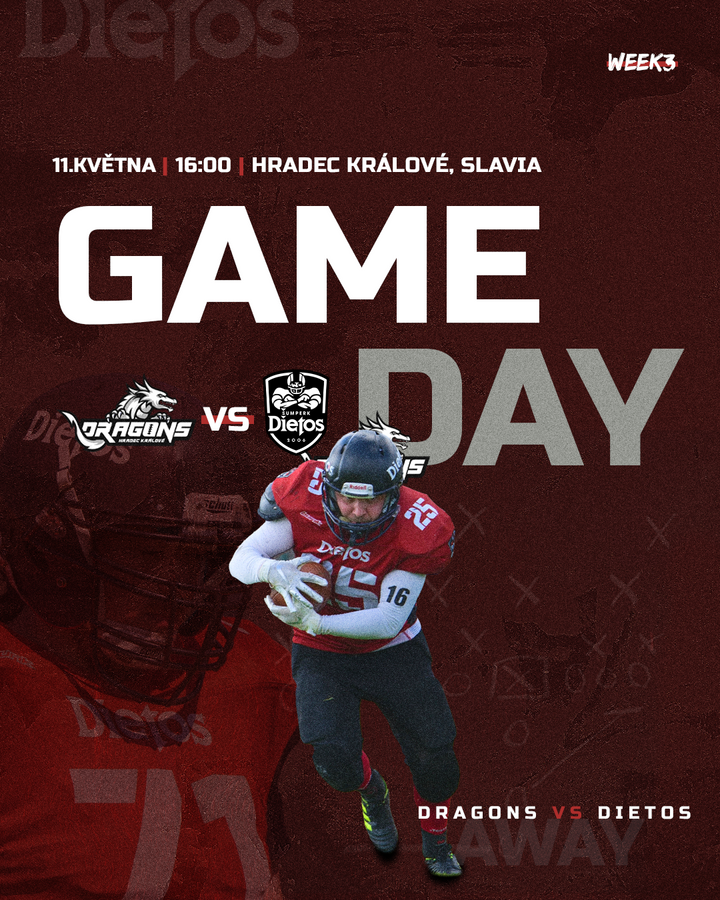 Pro tým Šumperk Dietos jsem vytvořila moderní a jednotný vizuální styl sportovní grafiky, který odpovídá jejich identitě a bojovnosti na hřišti. Grafika zahrnuje Gameday posty (Home/Away), finální skóre, rozpis zápasů (Schedule) i příběhové příspěvky, vše sladěné do klubových barev a dynamického stylu.